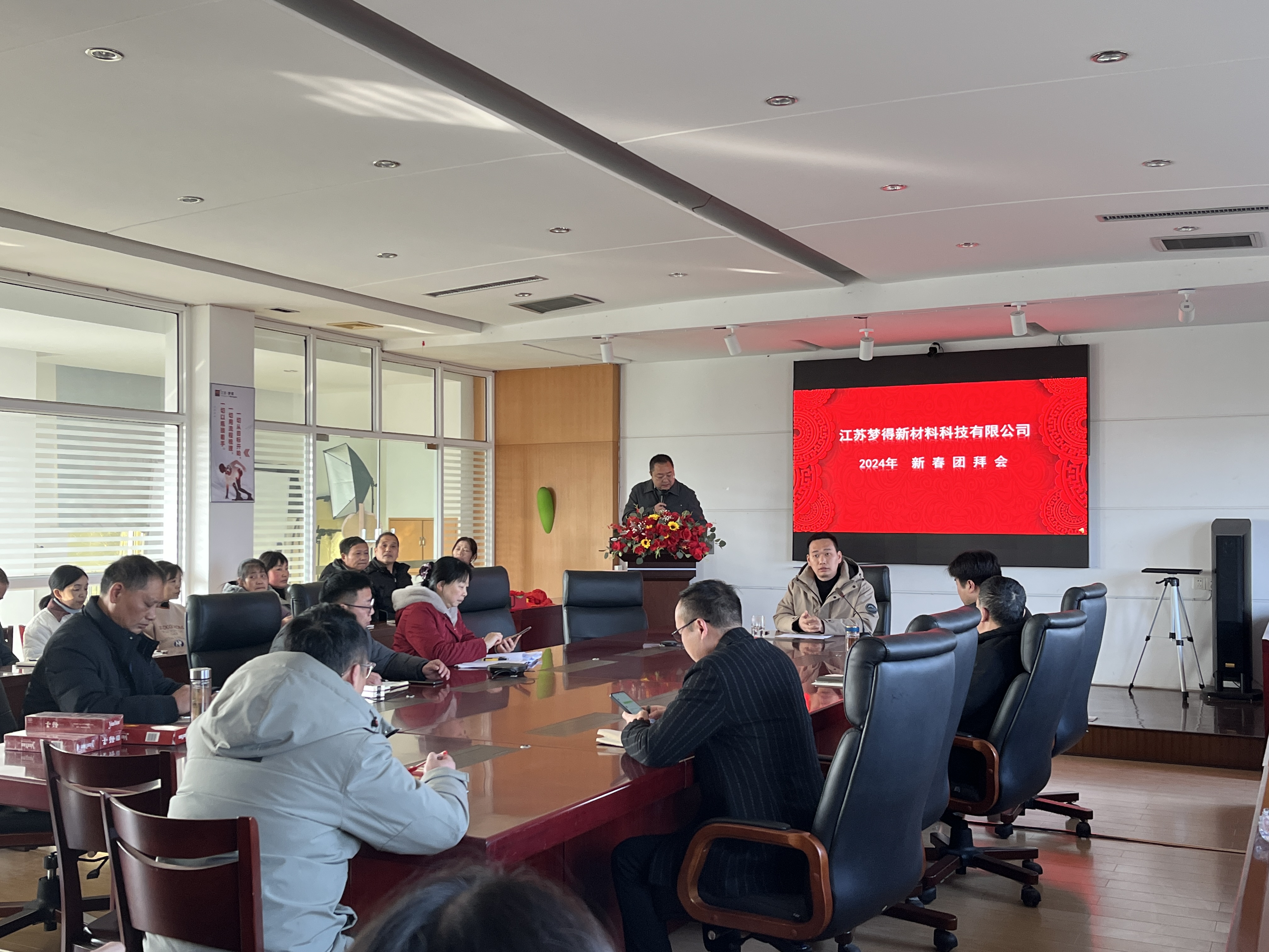 江蘇夢得新材料科技有限公司于2024年2月17日上午,在公司三樓會議室召開2024年新春團拜會。會議由公司任彬副總經(jīng)理主持,大家在熱情的掌聲中,在每一個夢得人溫暖祥和的笑容里拉開了帷幕。