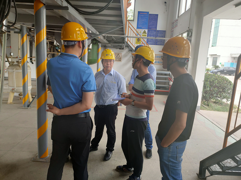 5月26日上午,江蘇省安全生產(chǎn)檢查組來公司視察安全生產(chǎn)工作,相關(guān)危化專家、市化治辦、應(yīng)急管理局、環(huán)保局、消防、市管局、延陵鎮(zhèn)政府等部門的領(lǐng)導(dǎo)同志陪同視察,公司總經(jīng)理杭康先生、安全生產(chǎn)總監(jiān)陸謹(jǐn)連先生以及車間生產(chǎn)的領(lǐng)導(dǎo)同志詳細(xì)匯報(bào)了目前公司相關(guān)安全生產(chǎn)工作及目前整改完成情況。