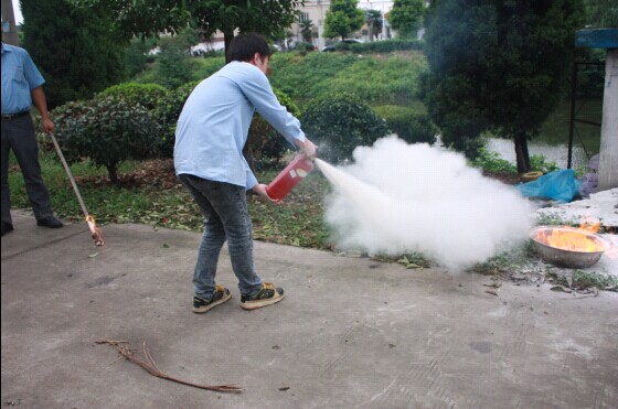 員工現(xiàn)場演練使用滅火器
